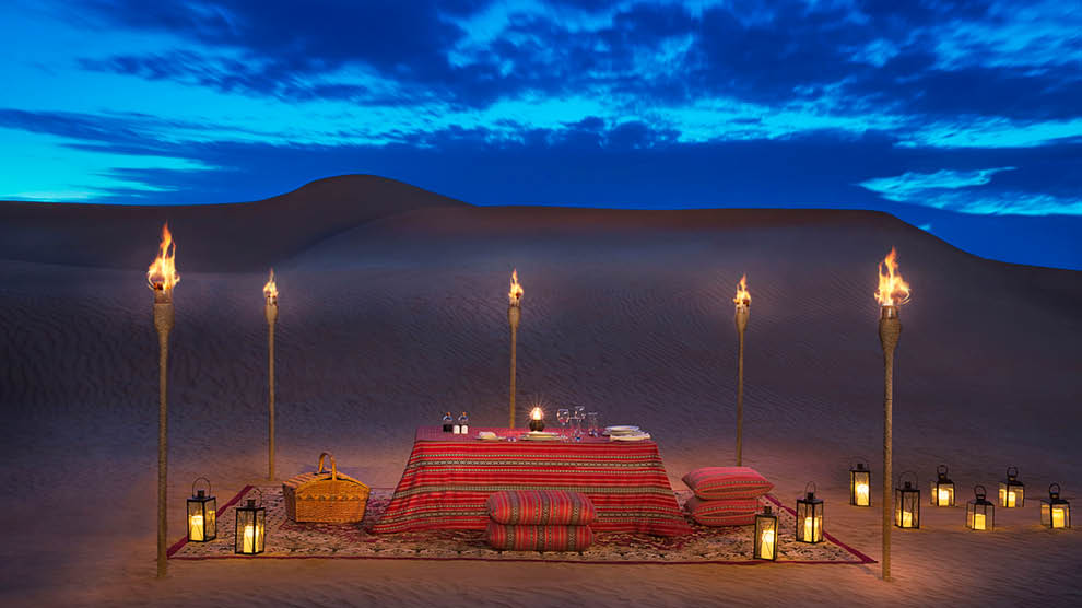 Relax in the romantic setting of a traditional Bedouin encampment, with all the service and style of a boutique hotel. Situated in a conservation area overlooking the spectacular desert dunes, and with the chance to spot indigenous Arabian oryx and gazelles, Al Maha is perfect for a honeymoon or an intimate escape, offering a truly unique and unforgettable experience.