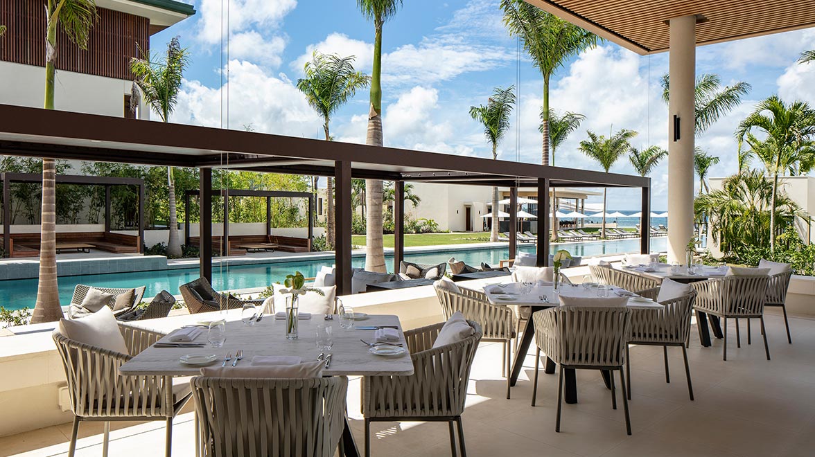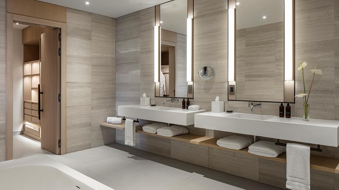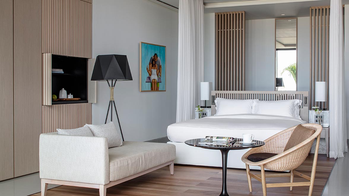 Each of the 43 open-plan suites and nine villas are designed in a chic and contemporary style, with an emphasis on clean lines and natural light. Located in the resort’s main buildings, the guestrooms are generously sized and equipped with a king size bed, sitting area, bathroom with a soaking tub and separate rain shower, mini bar, flat screen TV, complimentary WiFi and a furnished balcony or terrace. Silversands Garden Rooms are on the ground floor with easy access to the resort facilities; Silversands Ocean Rooms are on the second floor overlooking the beach, and Silversands Penthouse Level Rooms, One-Bedroom Suites and the Penthouse Suite are on the top floor offering the best views. The Penthouse Suite features a separate living room area and a more expansive terrace with wonderful views. For families, the spectacular villas offer a luxurious home away from home, with a choice of three or four bedrooms, spacious living/dining areas, fully-fitted kitchens, modern facilities and their own private pools. Both the Deluxe Garden View King and Deluxe Ocean View King have beautiful large picture windows in the bathrooms.
