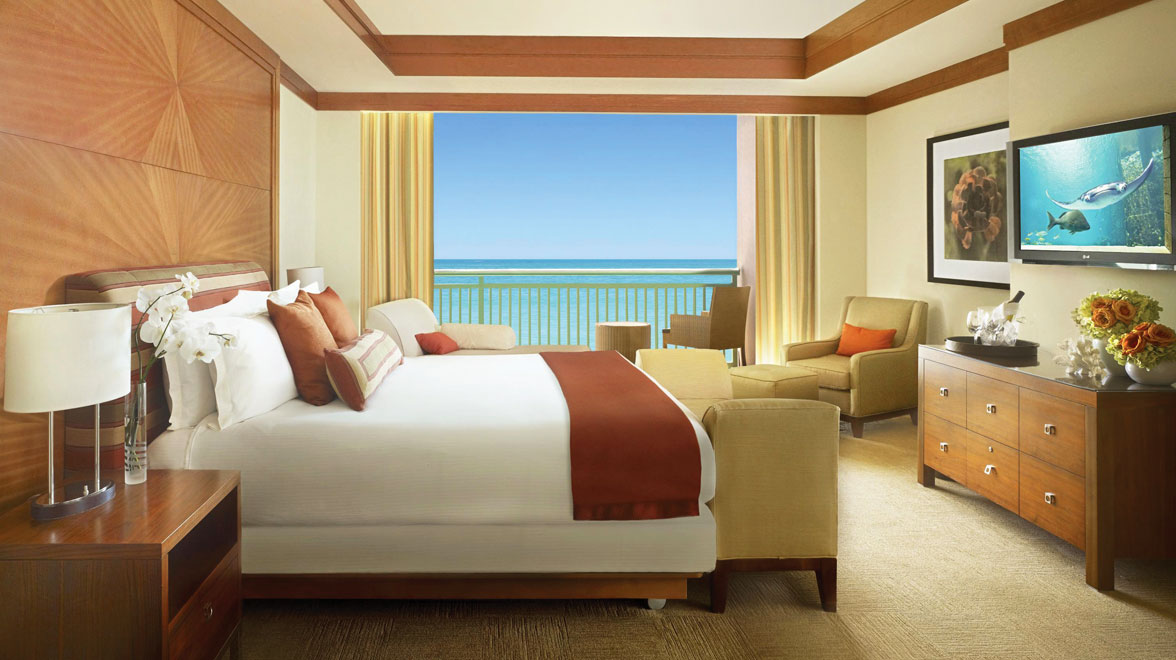 600 ocean view suites with five different types to choose from – Ocean, Azure, Sapphire, Presidential and Penthouse. Each suite offers full or French balconies with stunning views, living room, spacious marble bathroom, state-of-the-art entertainment and luxury features such as a custom in-room bar. Club level suites offer exclusive access to the Club Lounge with dedicated concierge service and complimentary gourmet breakfast, evening cocktails and hors d’oeuvres. Interconnecting suites are available for families.